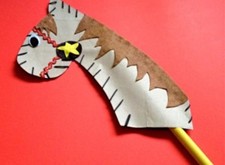 • Stick Horses – Have your child make a horse head. Attach them to yardsticks, empty gift wrap rolls, or wooden dowels, etc. Cut two heads from paper or use a paper bag, decorate, add yarn or felt mane, stuff with crumpled paper or not, add wiggle eyes or color them in, staple, add a stick, viola! Now the kids are ready for stick horse races.