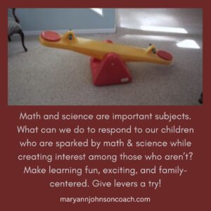 Some children love math and science, while others find these topics unenjoyable or uninteresting. My grandson, Ben, was interested in both. He spent time on the computer looking up science questions rather than playing outdoors. As a child, I wanted to understand both math and science. I was intrigued by them, but my learning style made both very challenging. I had children who weren’t interested at all!